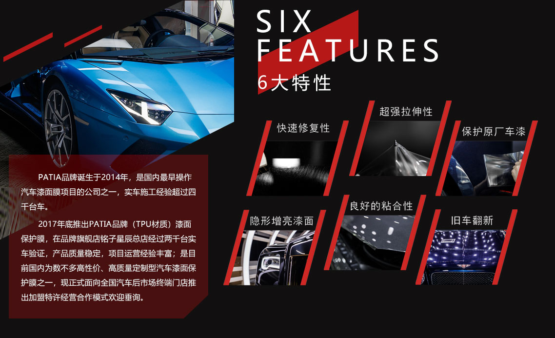 深圳市帕蒂亚贸易有限公司创办于2014年,是国内最早操作汽车漆面膜项目的公司之一,实车施工经验超过四千台车;2017年底推出PAITA品牌(TPU材质)漆面保护膜,在品牌旗舰店铭子星辰总店经过两千台实车验证,产品质量稳定,项目运营经验丰富;是目前国内为数不多高性价、高质量定制型汽车漆面保护膜之一,现正式面向全国汽车后市场终端门店推出加盟特许经营合作模式,欢迎垂询。